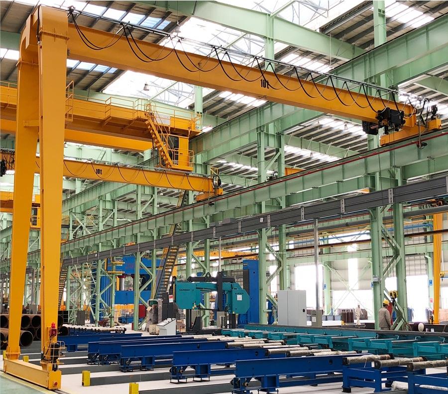 MGH型花架门式起重机具有场地利用率高、作业范围大、适应面广、通用性强等特点,在预制件制作混泥土箱型梁,提梁场、基础工程施工中广泛应用。它的金属结构像门形框架,承载主梁下安装两条支脚,可以直接在地面的轨道上行走,主梁两端可以具有外伸悬臂梁。